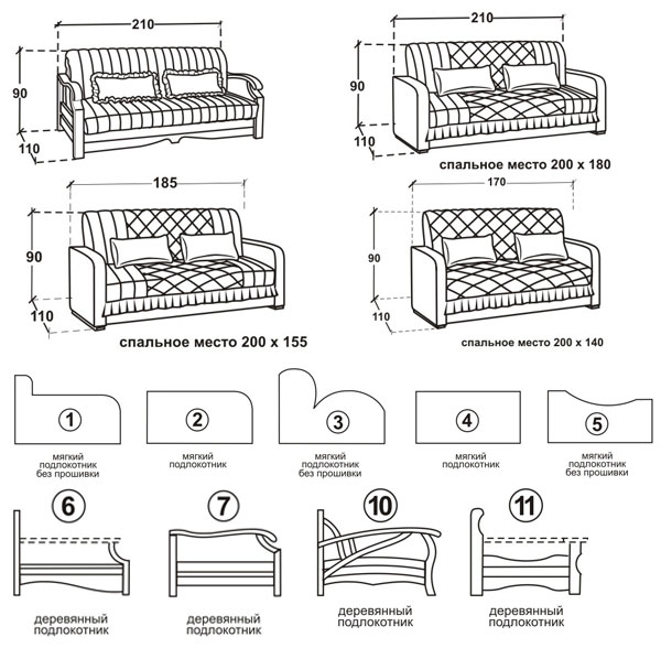 - Варианты размеров диванов